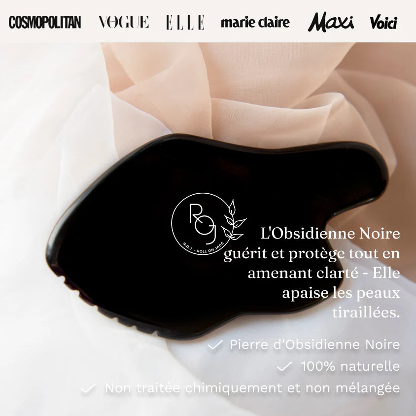 Notre Gua Sha Ultimate Lift est notre Gua Sha au design protégé et créé par Roll On Jade (dépot INPI) en collaboration avec la célèbre facialiste française Delphine Langlois. Il a été conçu pour être le plus performant des gua shas qui existent sur le marché. Il va vous permettre de stimuler, sculpter, redessiner en profondeur tous les contours et faces de votre visage, de votre cou et de votre poitrine grâce à ses multiples angles minutieusement étudiés et créés pour être les plus efficaces. Il a été créé en Obsidienne Noire, une pierre de roche volcanique extrêmement chargée en énergies et ayant des propriétés reconnues depuis des années.