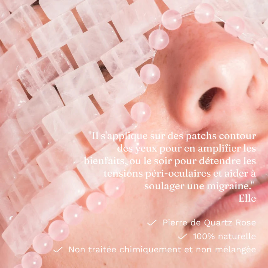 Notre masque aux cristaux de Quartz Rose est un masque unique en Quartz Rose, à poser sur le contour des yeux. Une réelle expérience SPA à la maison.